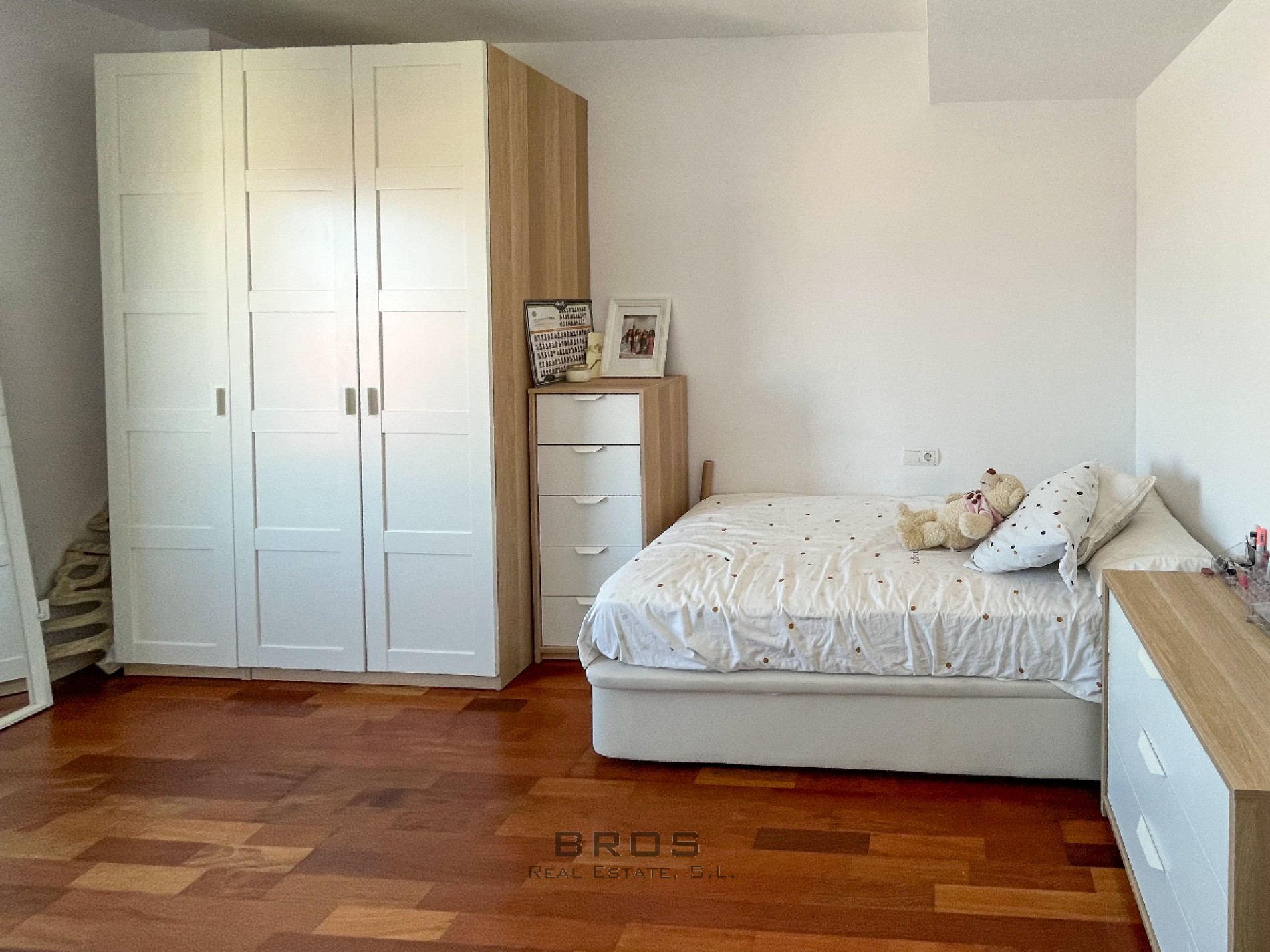 Àtic distribuït en un vestíbul, un saló-menjador, una cuina amb zona per menjar, 4 dormitoris (1 suite, 1 doble i 2 individuals) i 2 banys (un d'ells el de la suite).