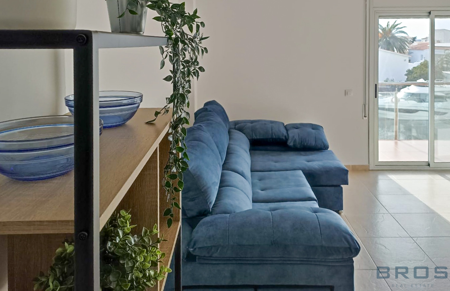 Bright living-dining room with direct access to the terrace and large aluminum double-glazed window with superb sea views
