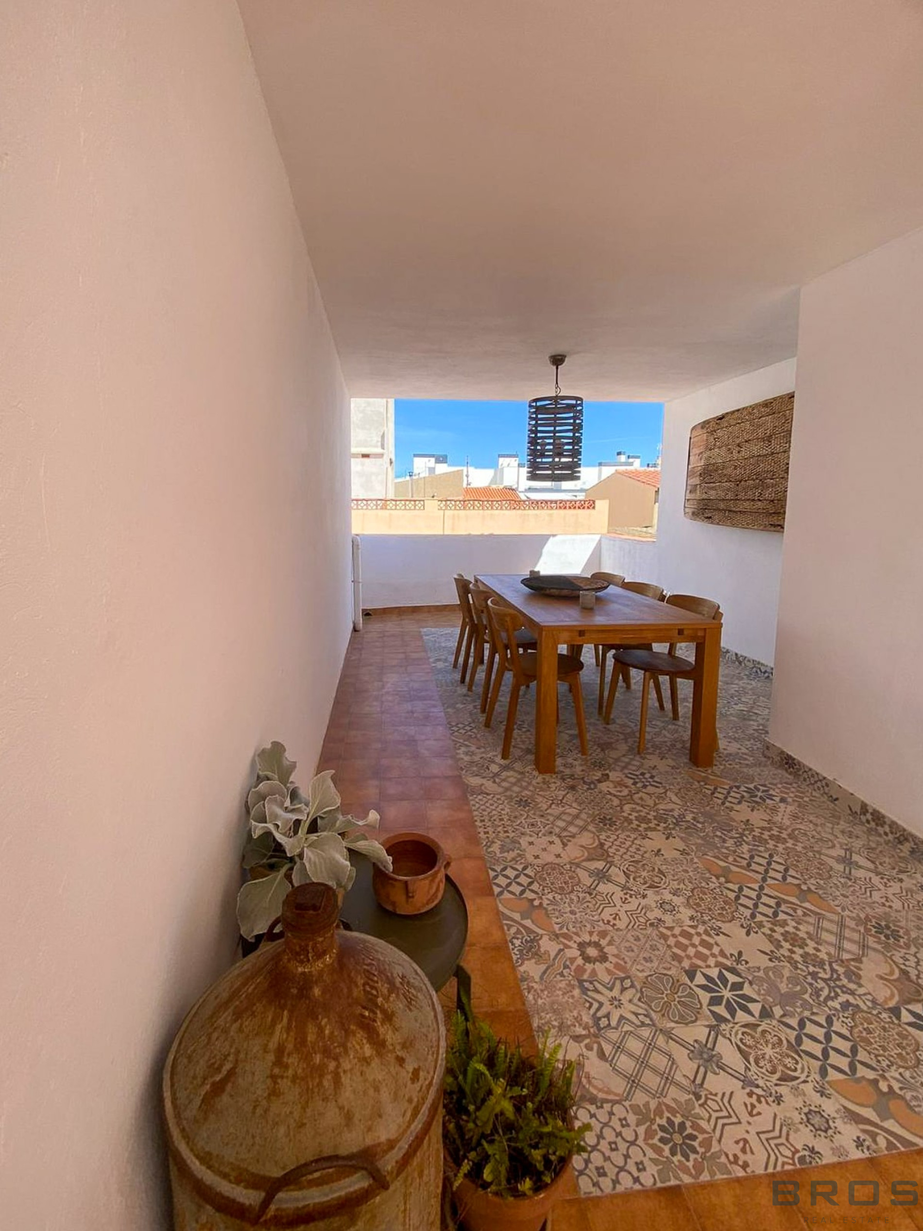 • En la planta superior, el dúplex cuenta con una impresionante terraza con una zona cubierta, perfecta para disfrutar de las vistas panorámicas casi 360º del casco antiguo de L’Escala y el mar. Este espacio al aire libre es ideal para cenas al aire libre o momentos de relajación.