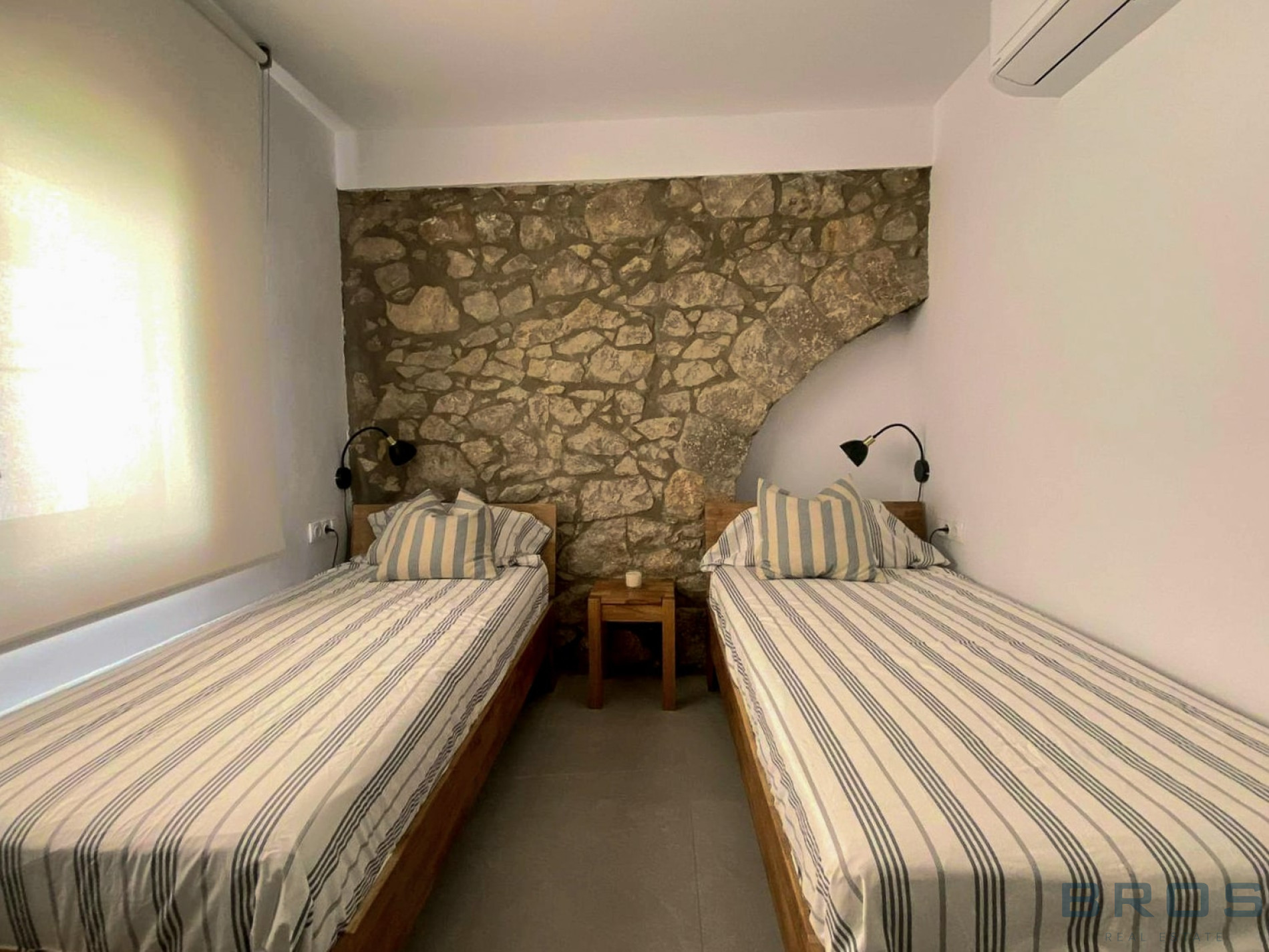 Ubicado en el corazón del casco antiguo de L’Escala, este edificio reformado combina detalles tradicionales catalanes, como las paredes de piedra originales, con un diseño moderno y funcional. La propiedad, construida originalmente en 1963 y con un total de 155 m², está distribuida en tres plantas y se divide en dos viviendas independientes: un estudio en planta baja y un dúplex en las plantas superiores.
