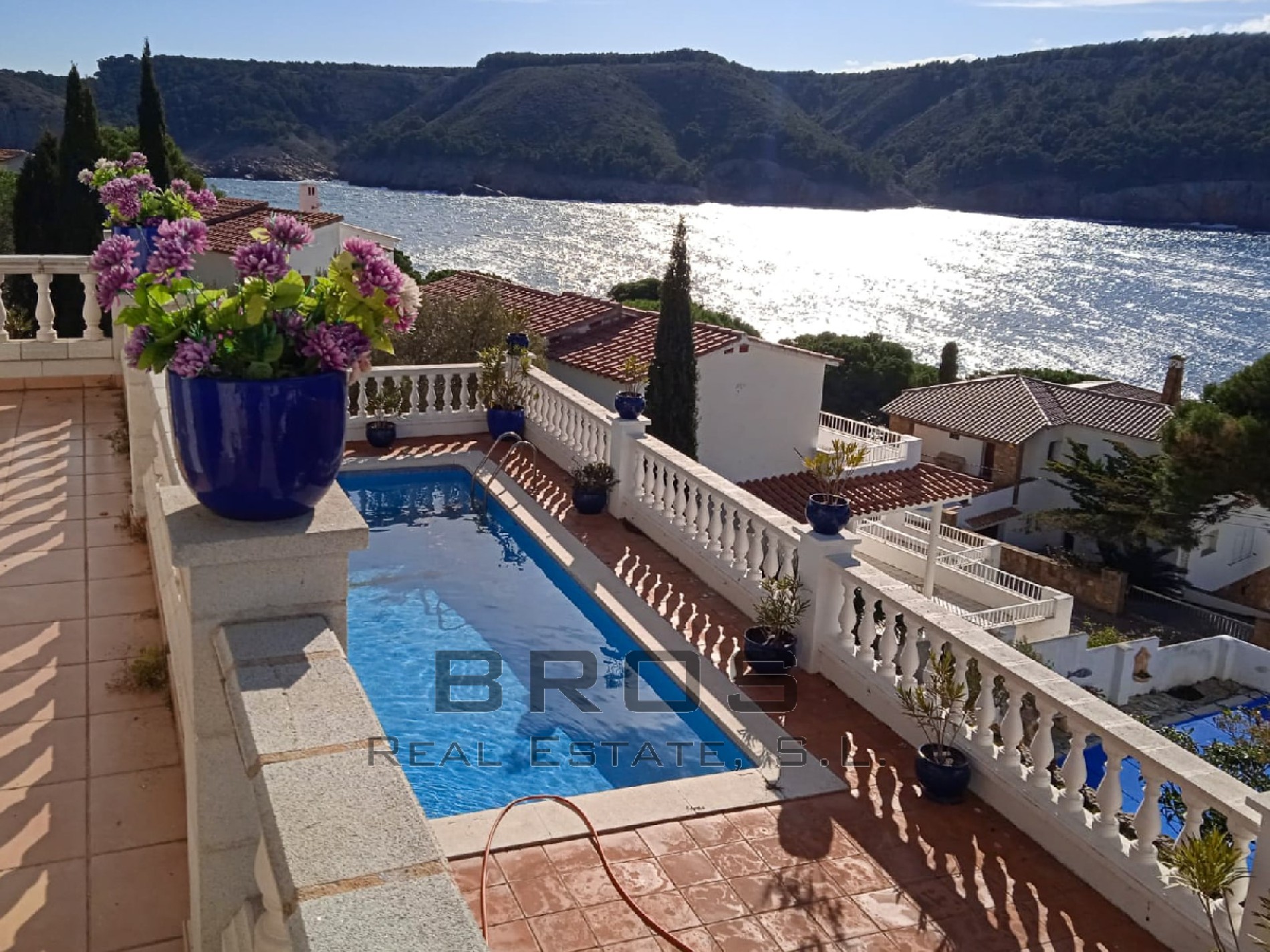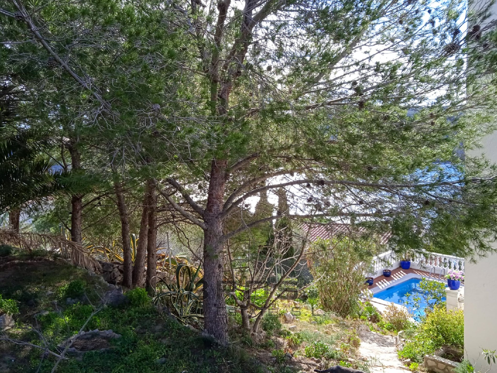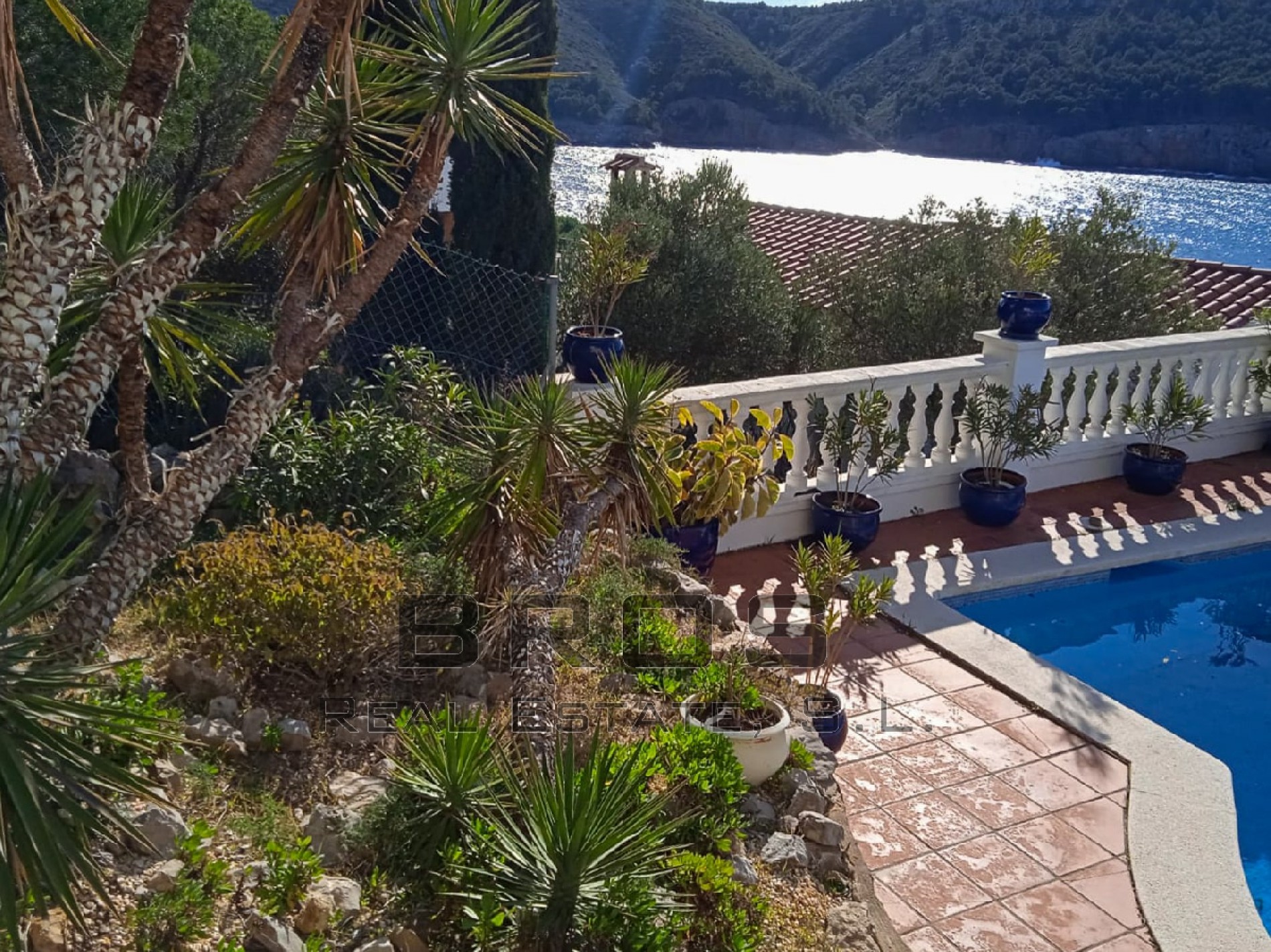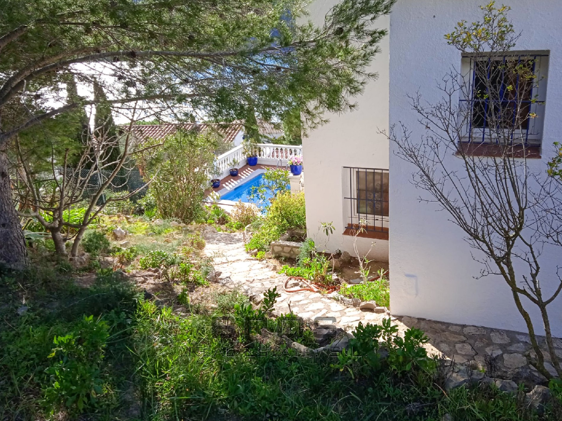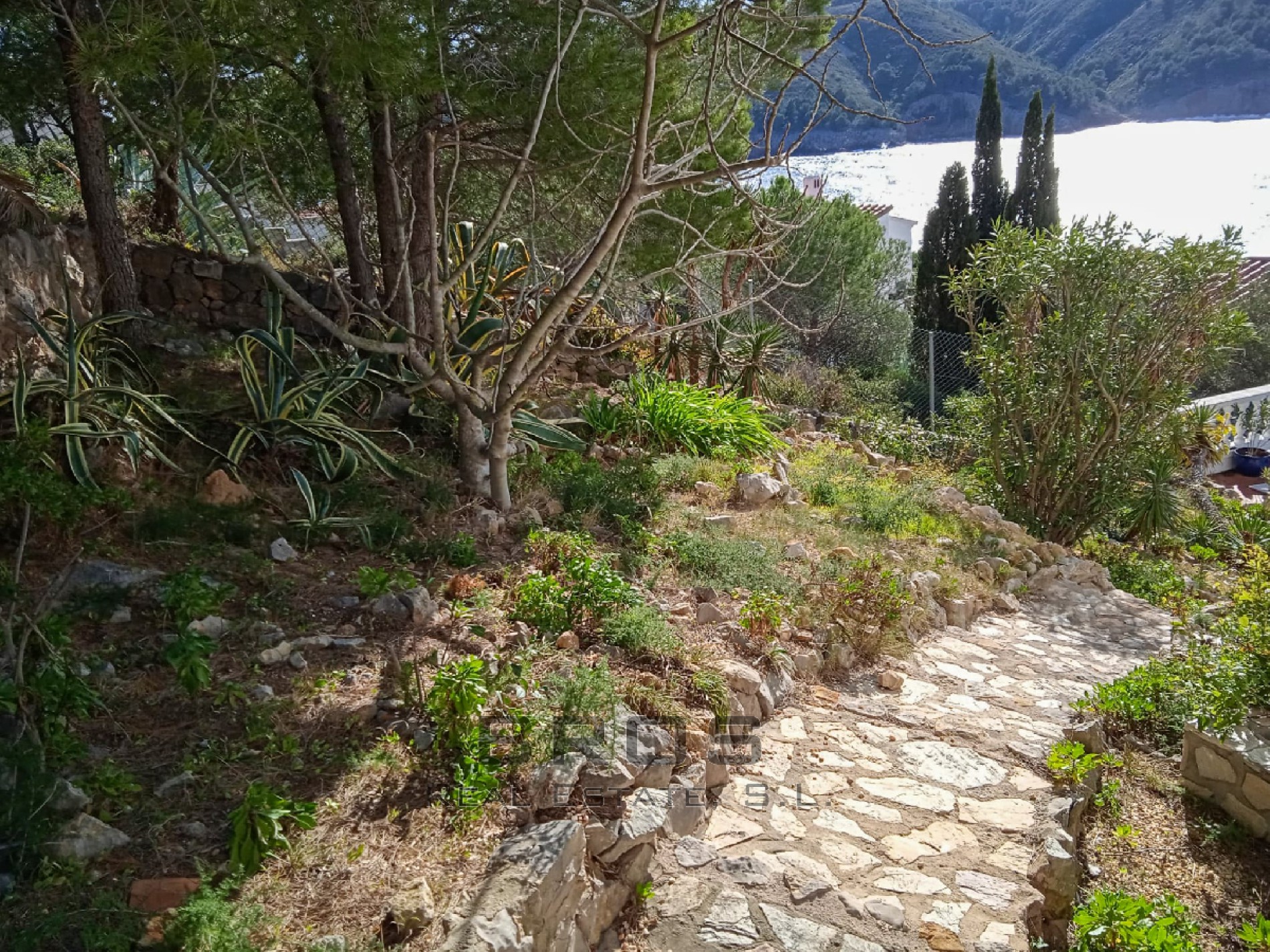 El jardín que rodea la vivienda tiene unas espectaculares vistas de 360º a la Cala Montgo y al parque natural del Montgri, dispone de una zona con barbacoa.