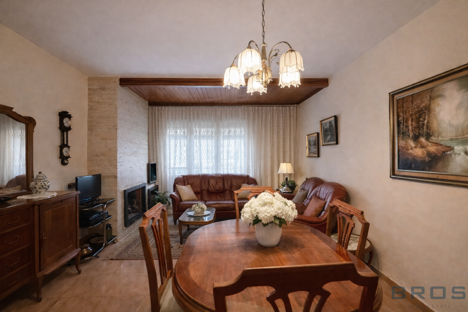 Al acceder a la vivienda encontramos un recibidor que da paso a una habitación doble actualmente utilizada como despacho. Siguiendo el recorrido de la casa se accede a un espacioso y luminoso salón-comedor con chimenea, una estancia muy acogedora y con gran amplitud ideal para reuniones familiares.