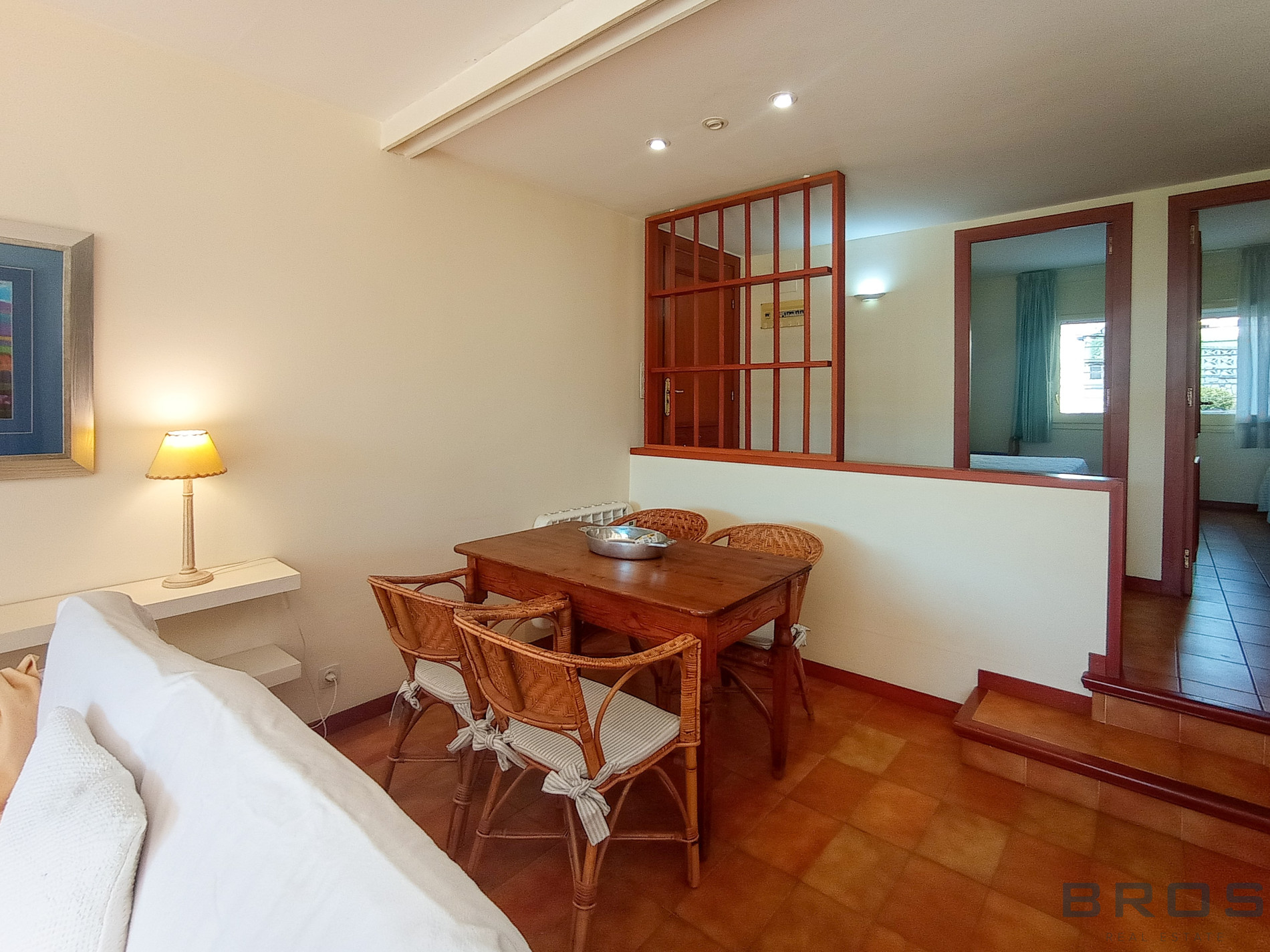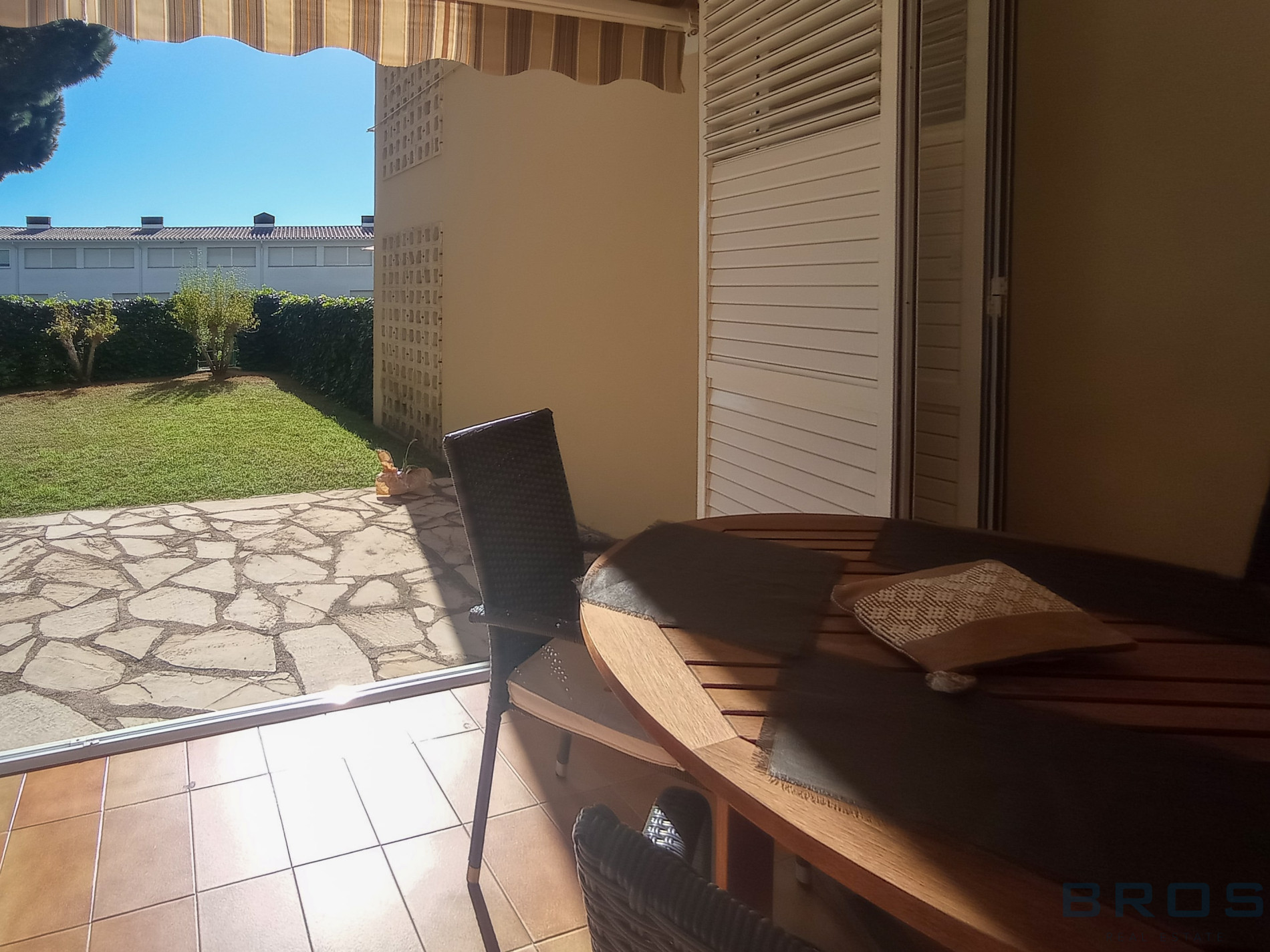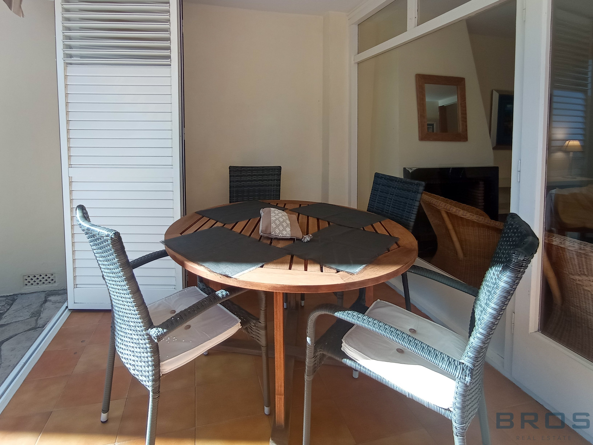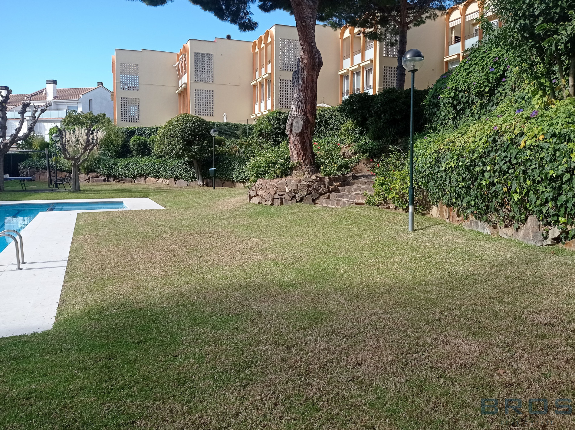 En la calle Tramuntana de S’Agaro, en un edificio construido en el año 1980 que se ha rehabilitado recientemente y que dispone con una zona comunitaria ajardinada con piscina y zona de juegos.