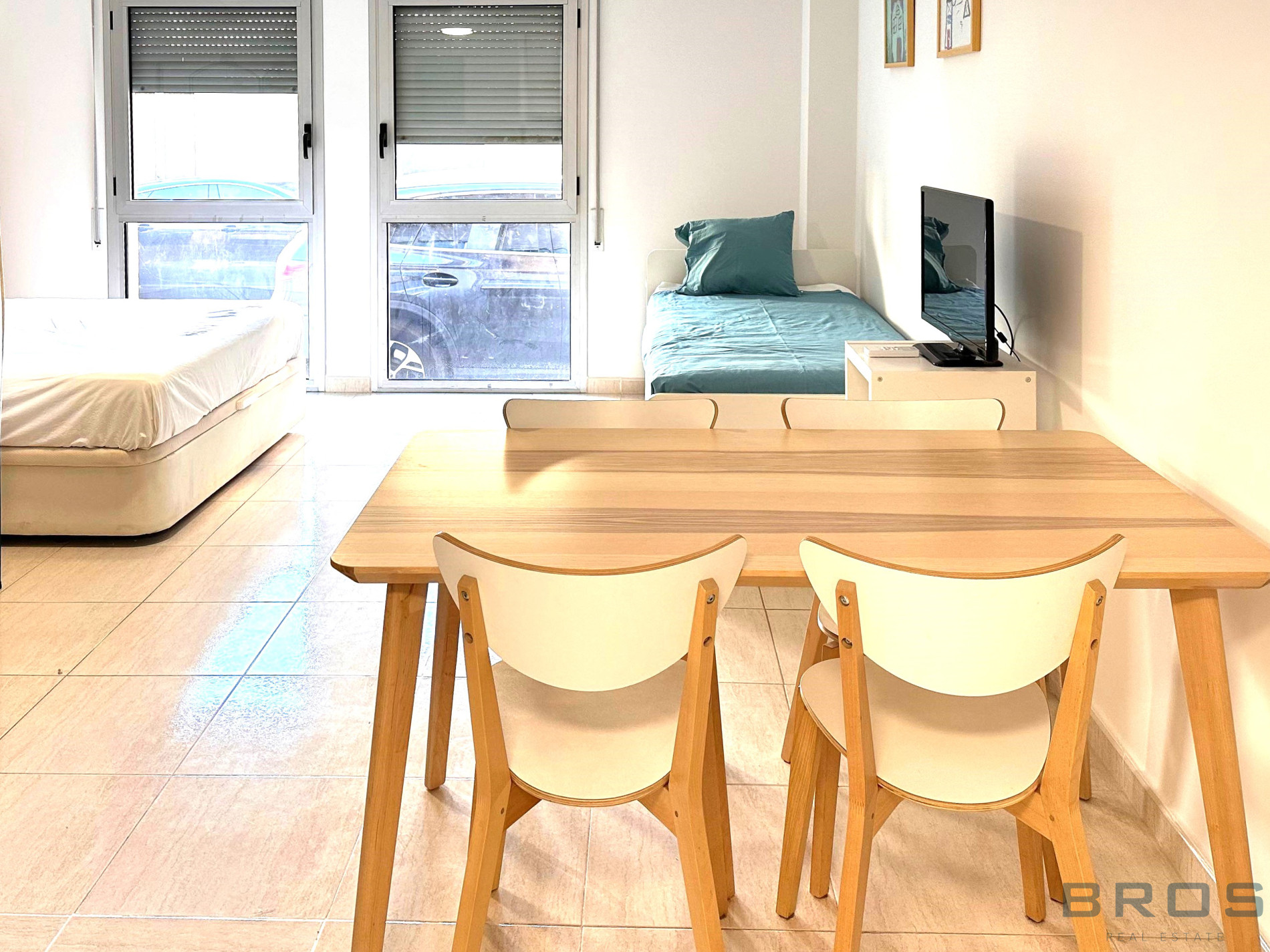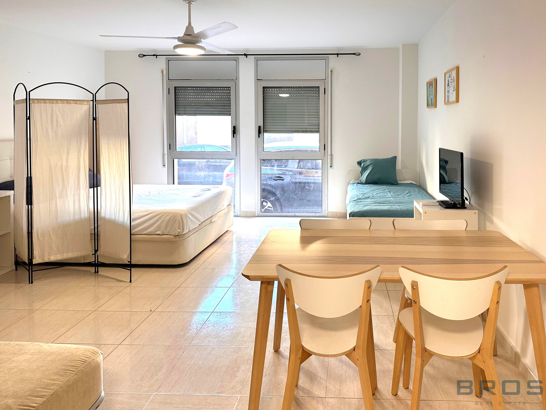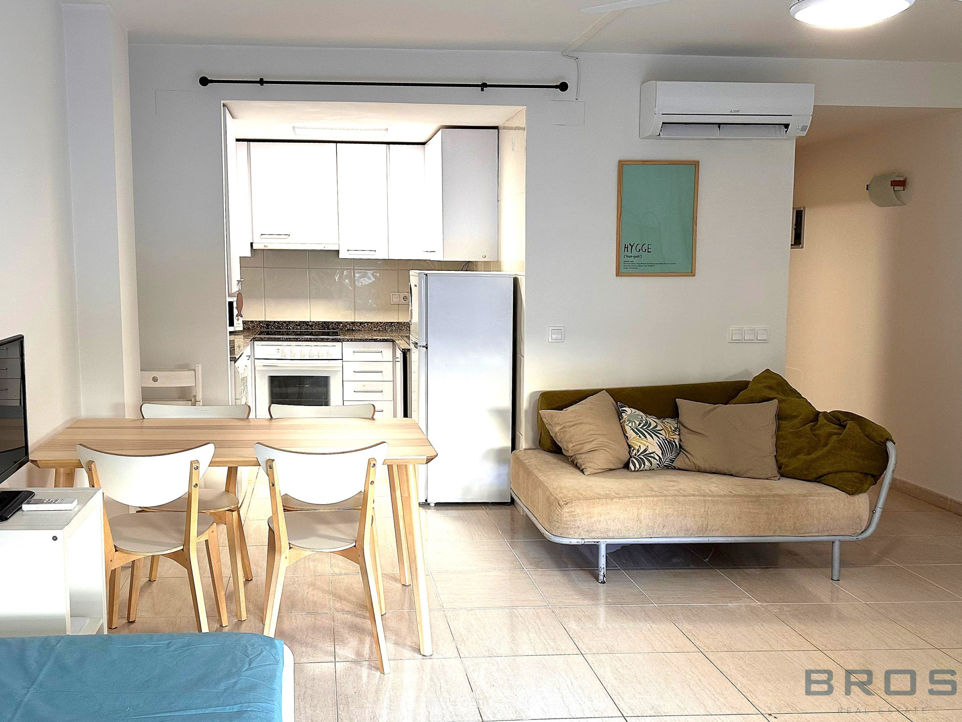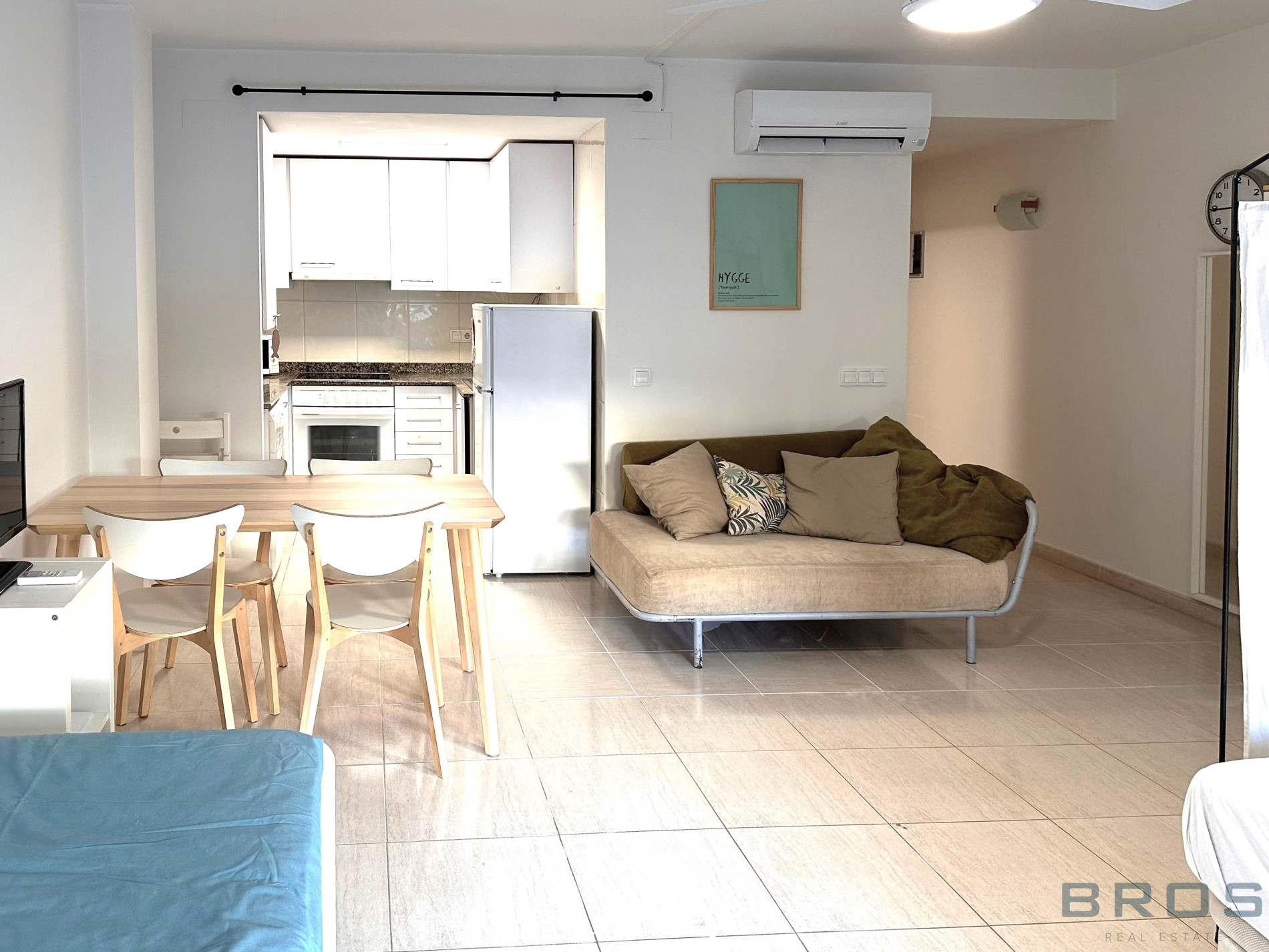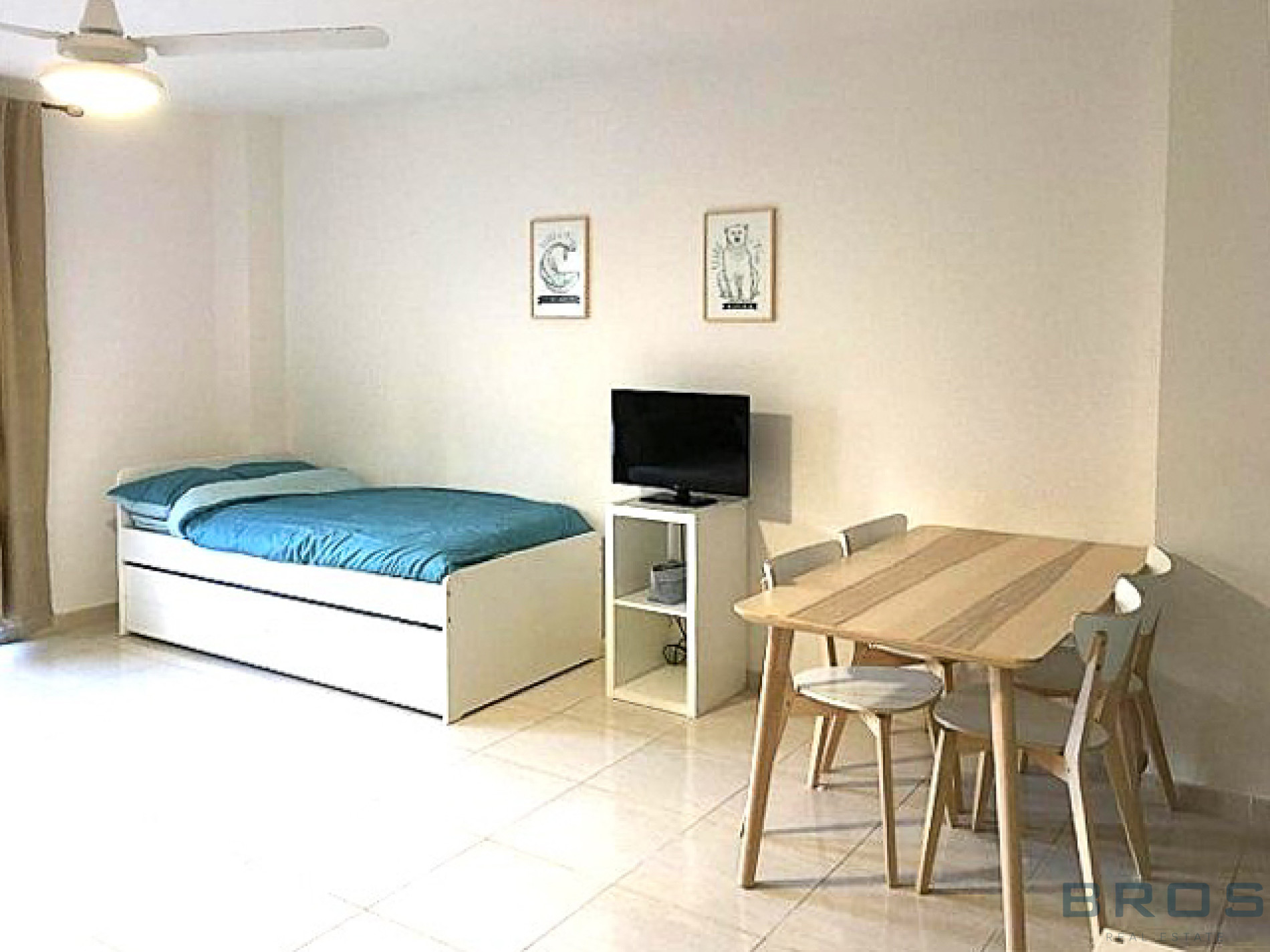 Studio situé au rez-de-chaussée de 38 m2 qui dispose d'un hall et d'un espace ouvert dans lequel se trouve un salon-salle à manger avec une cuisine ouverte, un coin nuit et une salle de bain.