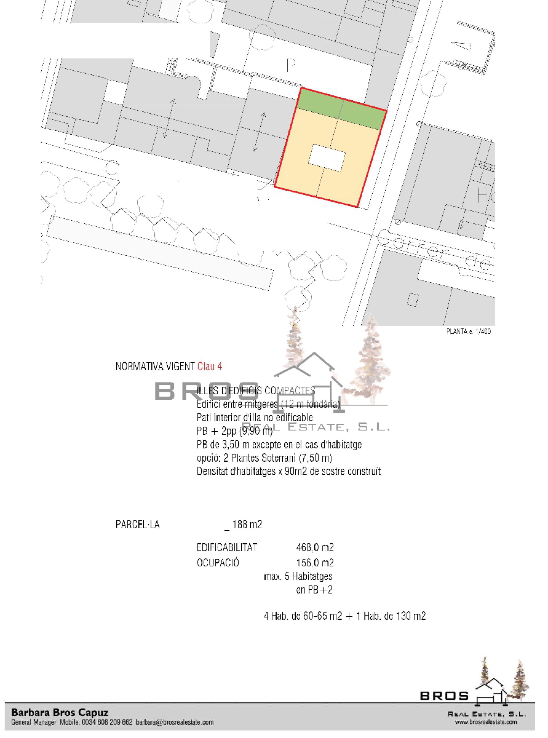 Au centre de Platja d 'Aro, près de la plage, cette maison de 138 m2 construite sur un terrain de 188 m2. Le renversement de ce bâtiment pourrait construire 468 m2 avec une occupation de 156 m2. Le résultat serait un bloc au rez-de-chaussée plus 2 étages comprenant 5 appartements (4 appartements de 60-65 m2 et 1 grenier de 130 m2), le bâtiment disposerait d'un jardin central.
